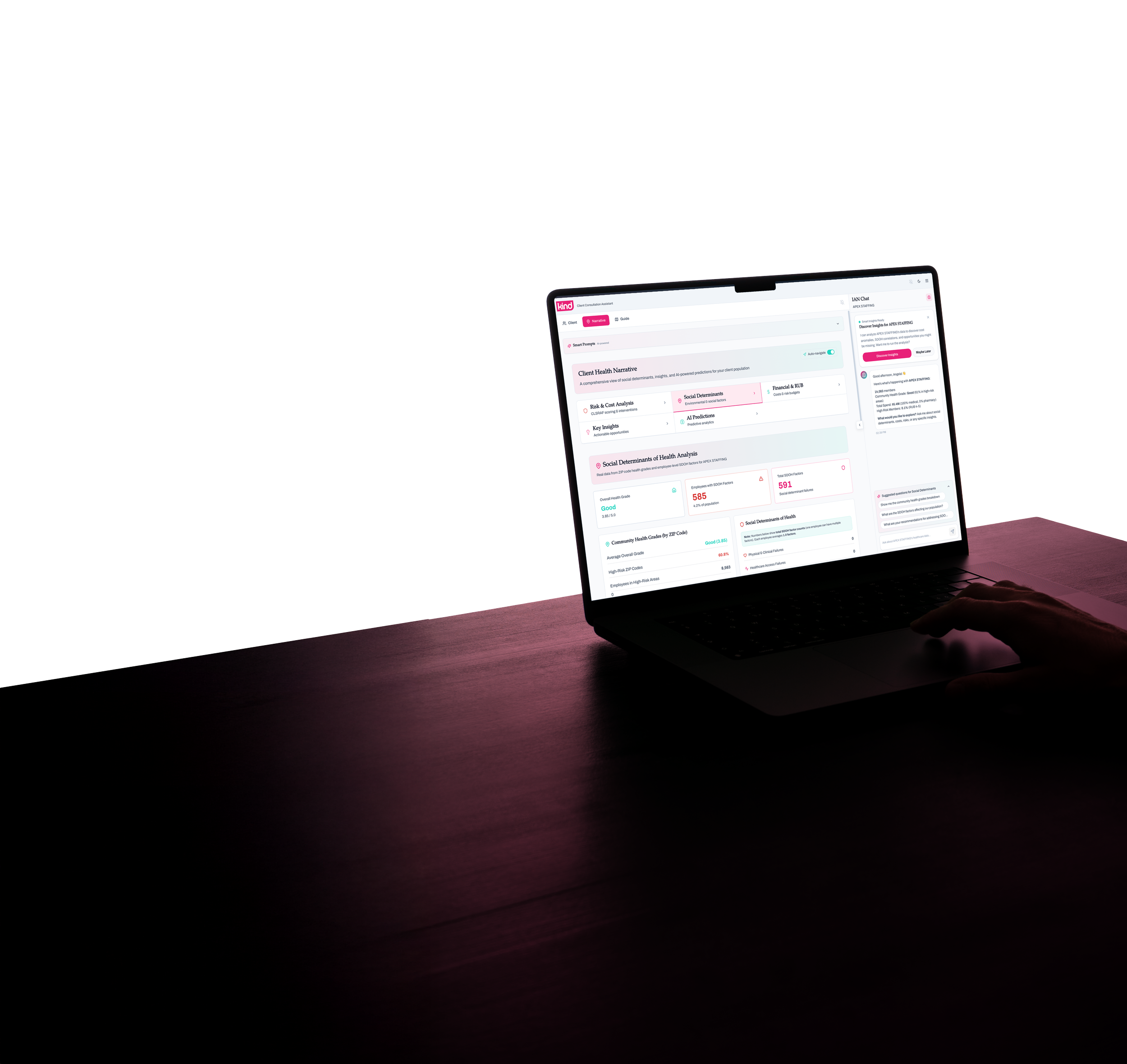 KindHealth AI closes that gap. It continuously monitors your entire book—claims, invoices, emerging catastrophic risk, clinical complexity—and surfaces prioritized guidance. Not "here's your data." But: here's what changed, here's who needs attention, here's what to do, and here's how to defend it to the CFO.